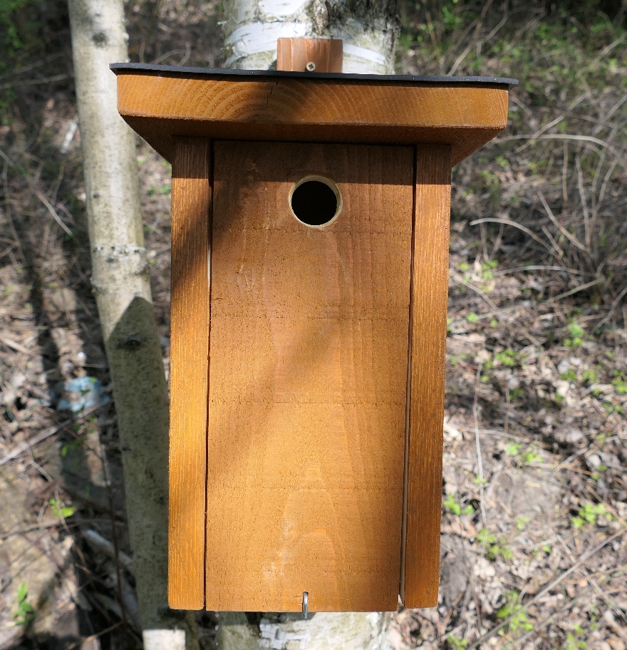 Búdka pre hniezdenie druhov: Sýkorka belasá, Sýkorka uhliarka, Sýkorka hôrna, Vrabec poľný a domový.